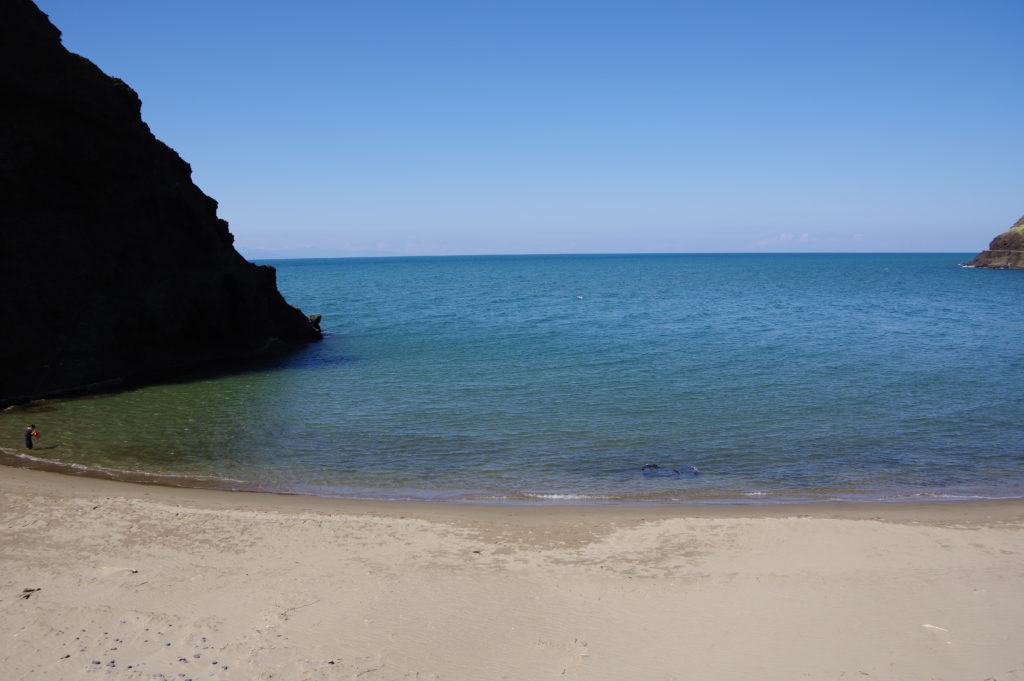 日本海の荒波にもまれ、ビーチの隅には漂着物が多いこともありますが、白い砂浜と透き通った海水が美しさを放ちます。海水浴場とは違い、プライベートビーチのような雰囲気が漂います。