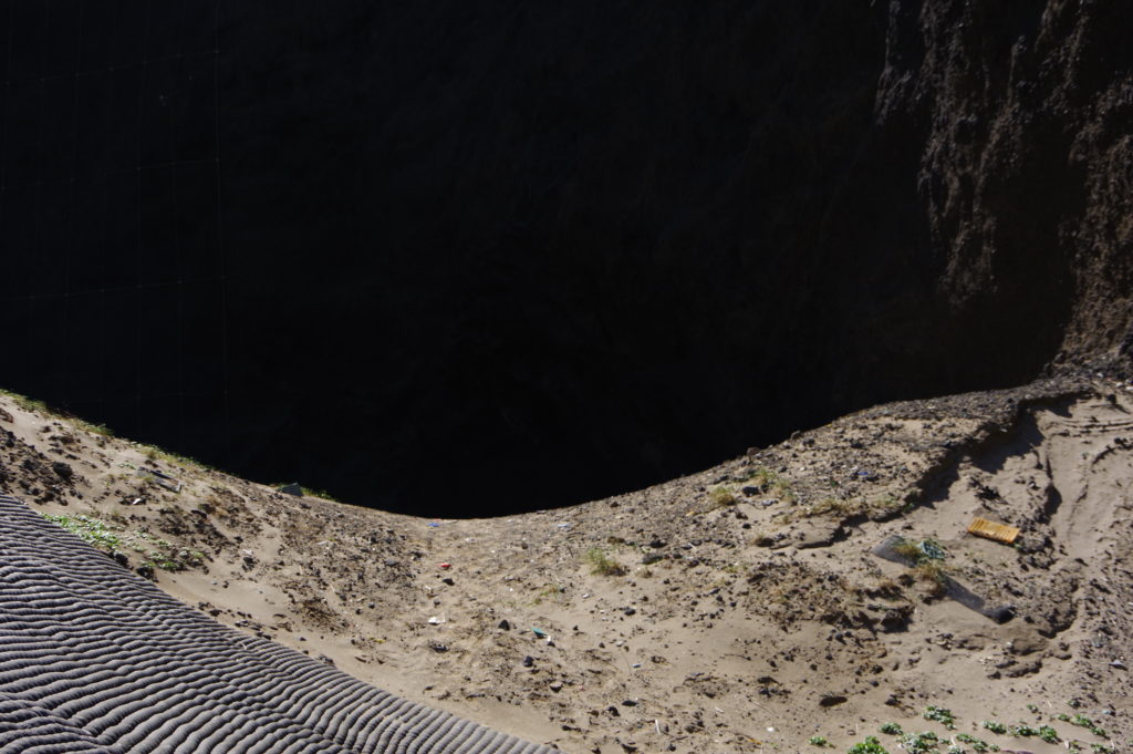 風向きによっては、ここから暴風が吹き抜けるよう。お天気が良ければ対岸に佐渡ヶ島が見えることもありますよ。