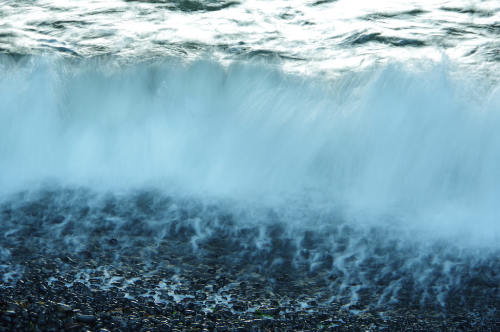 寄せて返す波に洗われる小石が立てる音が印象的です。