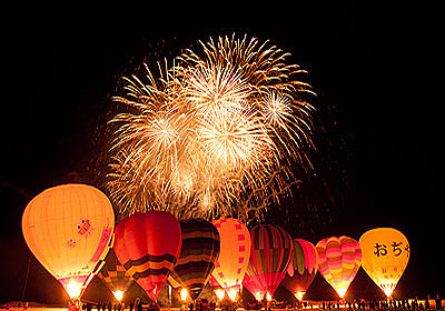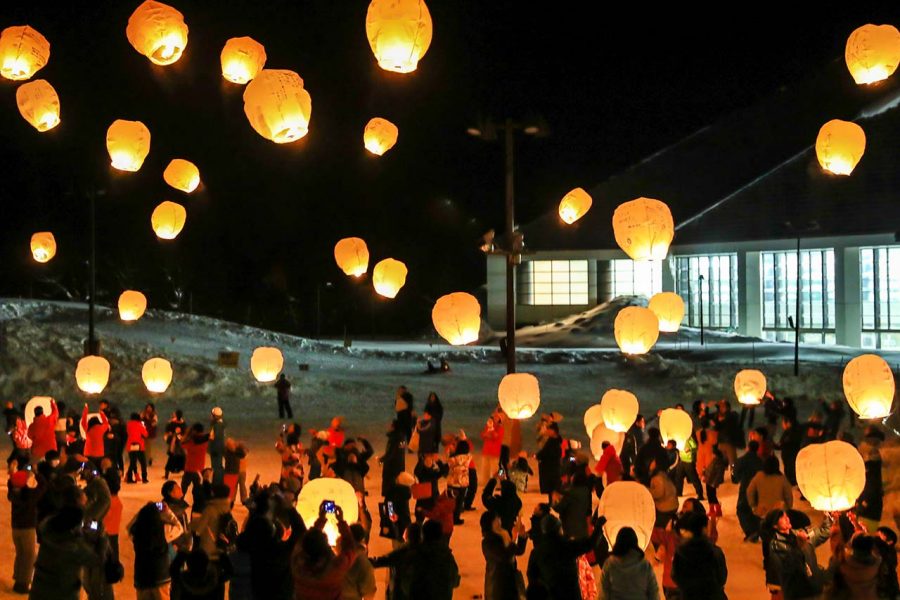 雪原祭りも行われ、普段なかなか見られない熱気球を間近で見られるとともに事前申し込みにより乗船体験もできます。初日の夜はグローバルーンフェスティバルが開催、巨大な灯ろうのような熱気球と花火が打ち上がり、幻想的な光景が見られます。