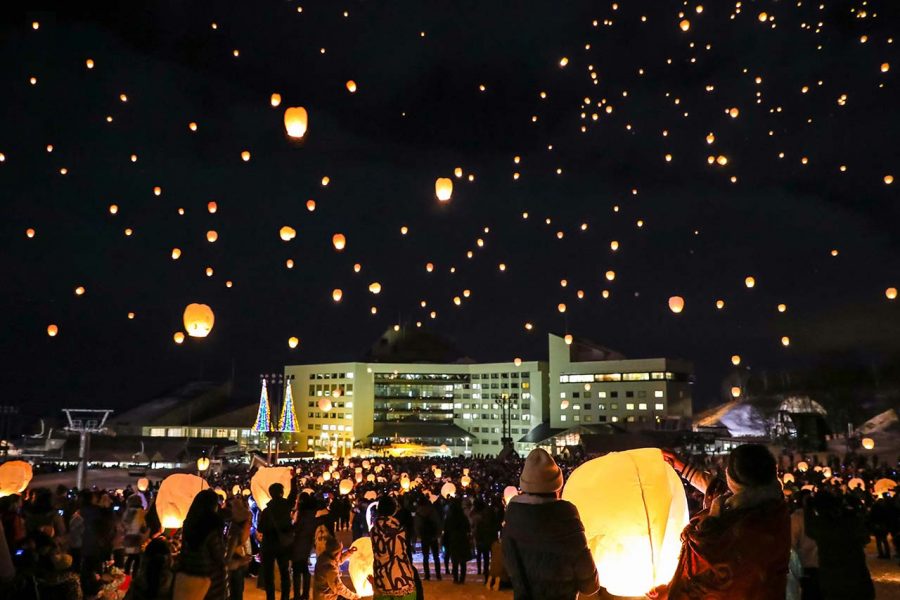 スキー場も併設する新潟で人気のリゾートホテルグリーンピア津南では、かまくら体験などのイベントとともにスカイランタンの打ち上げが行われます。