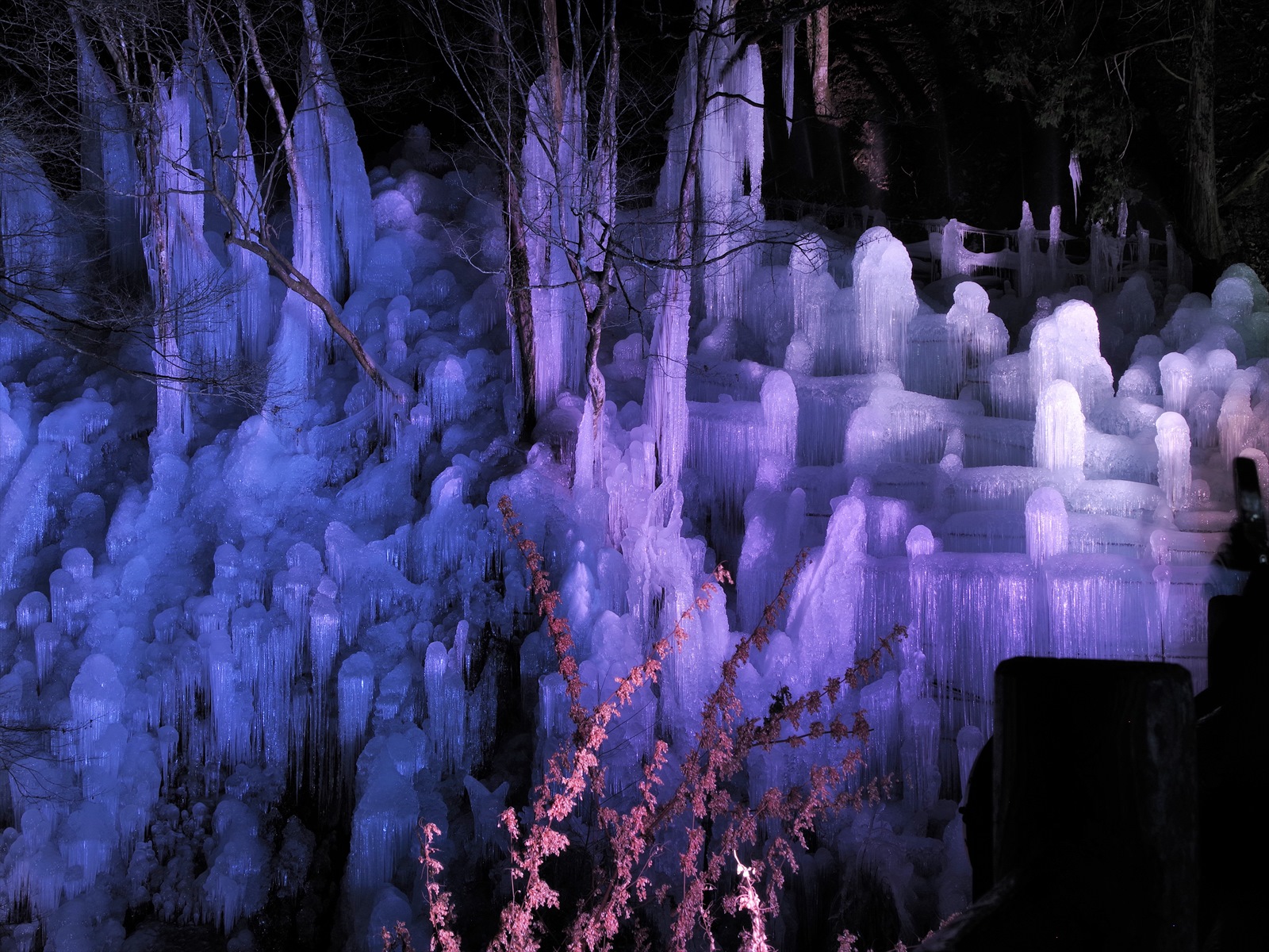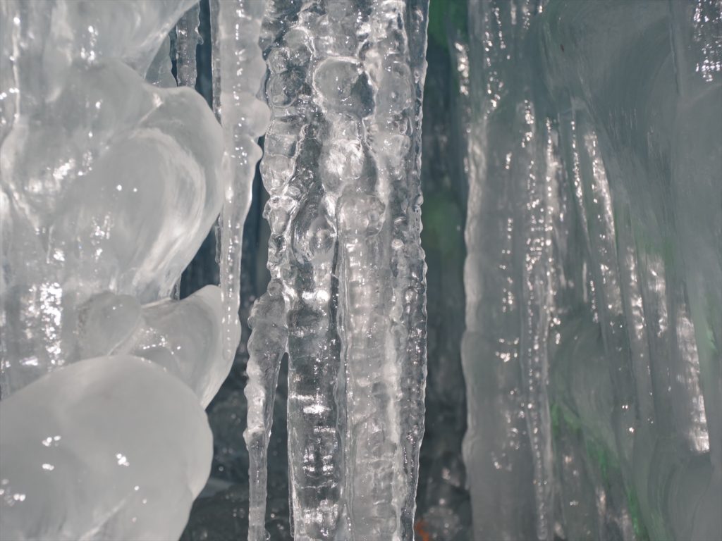暗くなるにつれ氷柱がさらに美しい光景を放ちます。まるでおとぎの国にいるかのような錯覚に陥る風景。