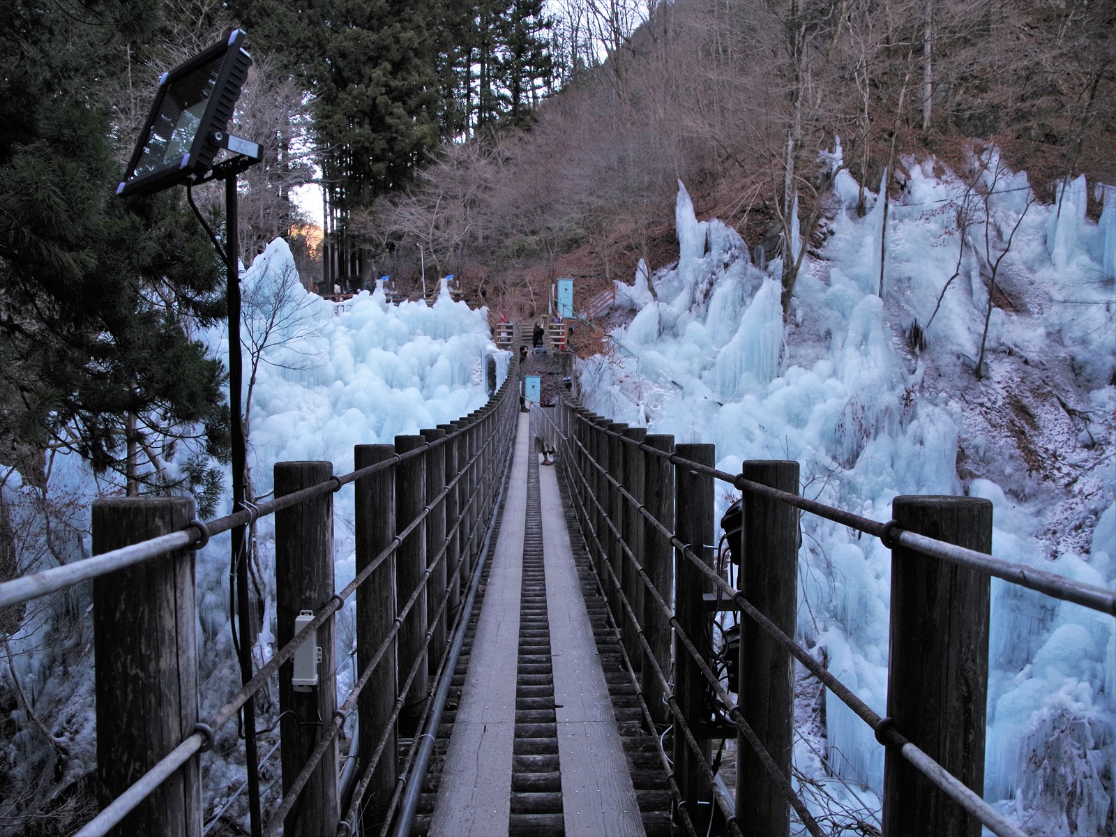吊り橋はライトアップが始まる16:30から通行禁止になるので、橋を渡って氷柱を見たい人は、早めに足を運んでみてくださいね。