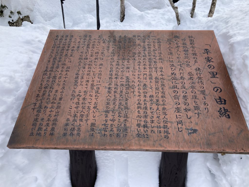 ミニかまくら祭が行われる平家の里は平家落人の方の一部が安住の家地として選んだエリアです。