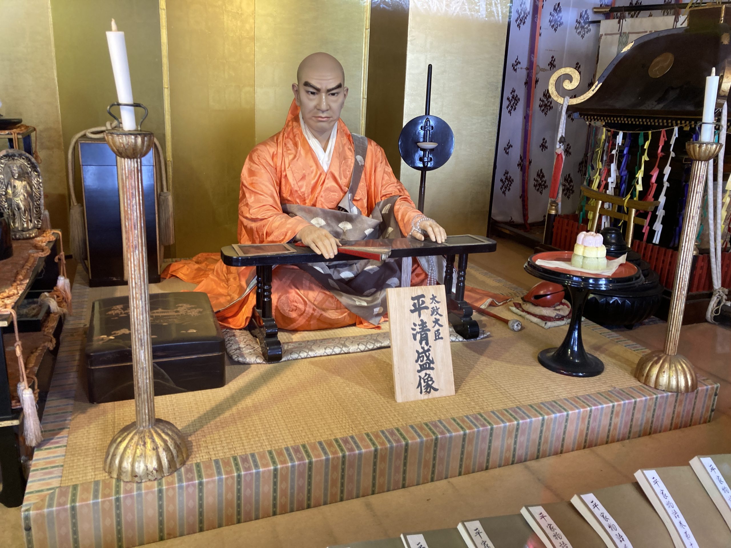 先に進むと3つの建物からなる展示館のよろず床しどころがあり、平清盛蔵や平安絵巻、重要文化財の平家物語、平家にまつわる年表などが展示されています。
