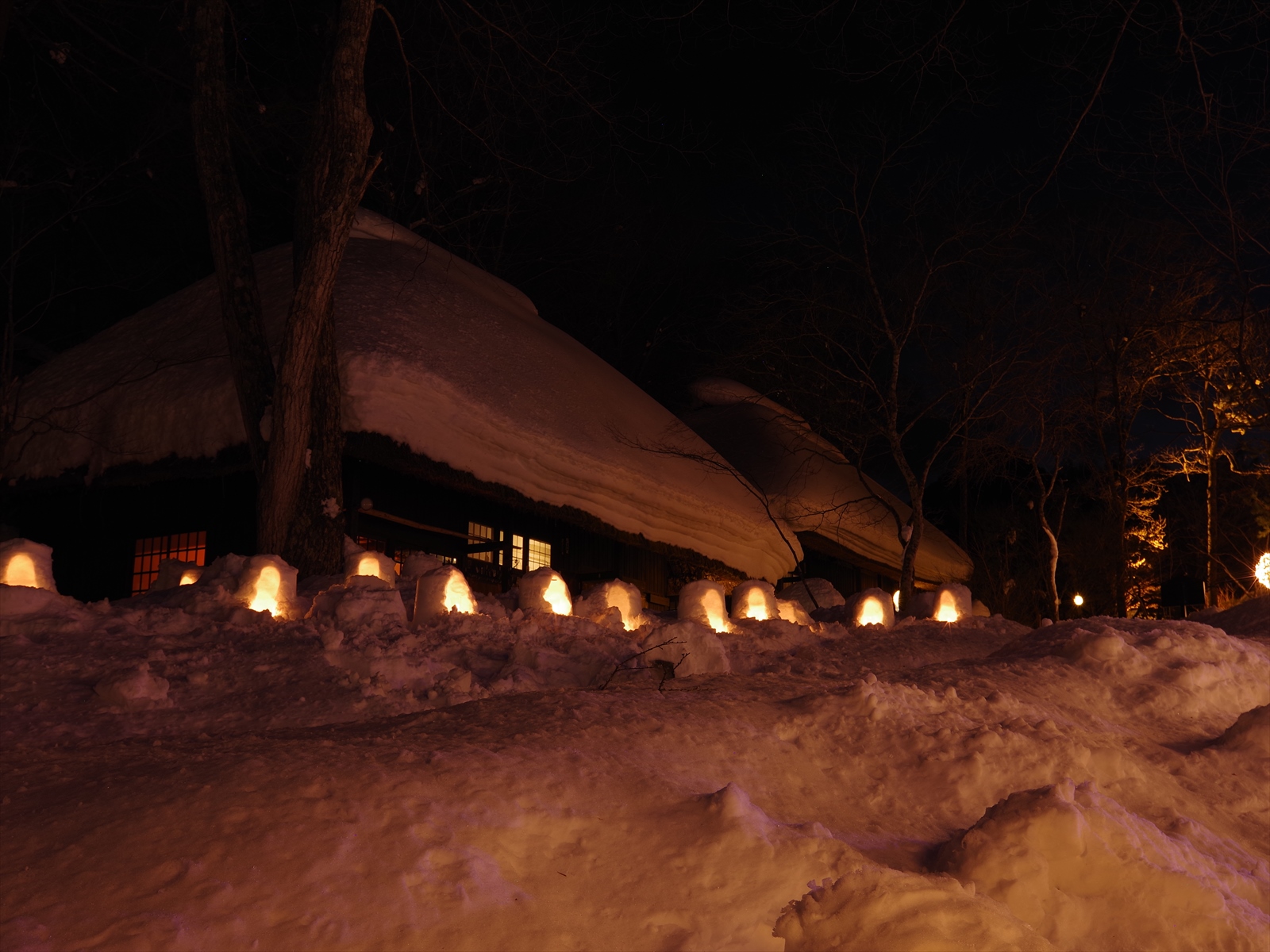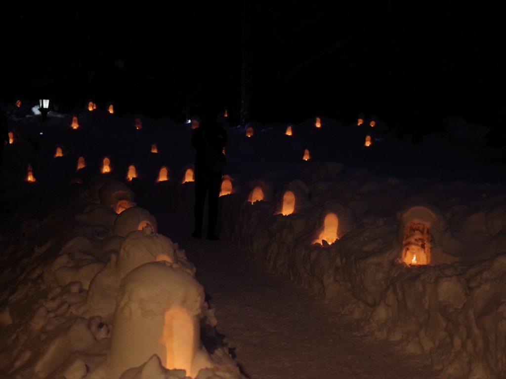 そして厳しい冬には豪雪地帯と一変し、園内いたるところにミニかまくらが作られ、日が落ちるとライトアップされ幻想的な光景を見ることができます。