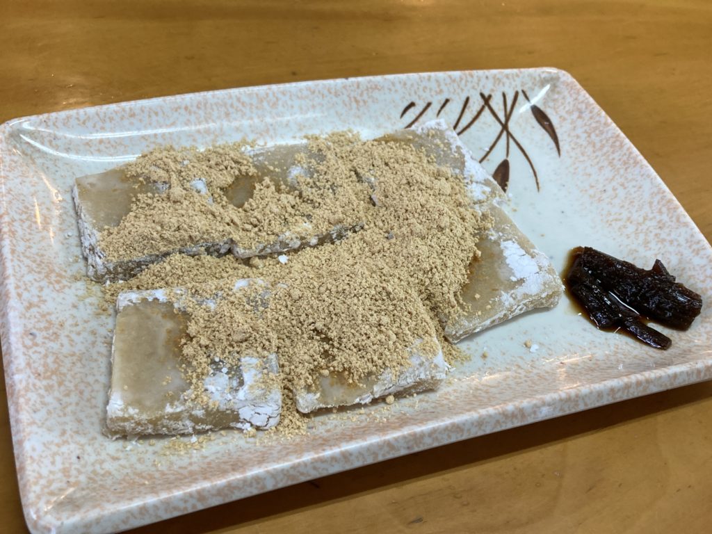 弾力のある餅にきなこがたっぷりかかっています。