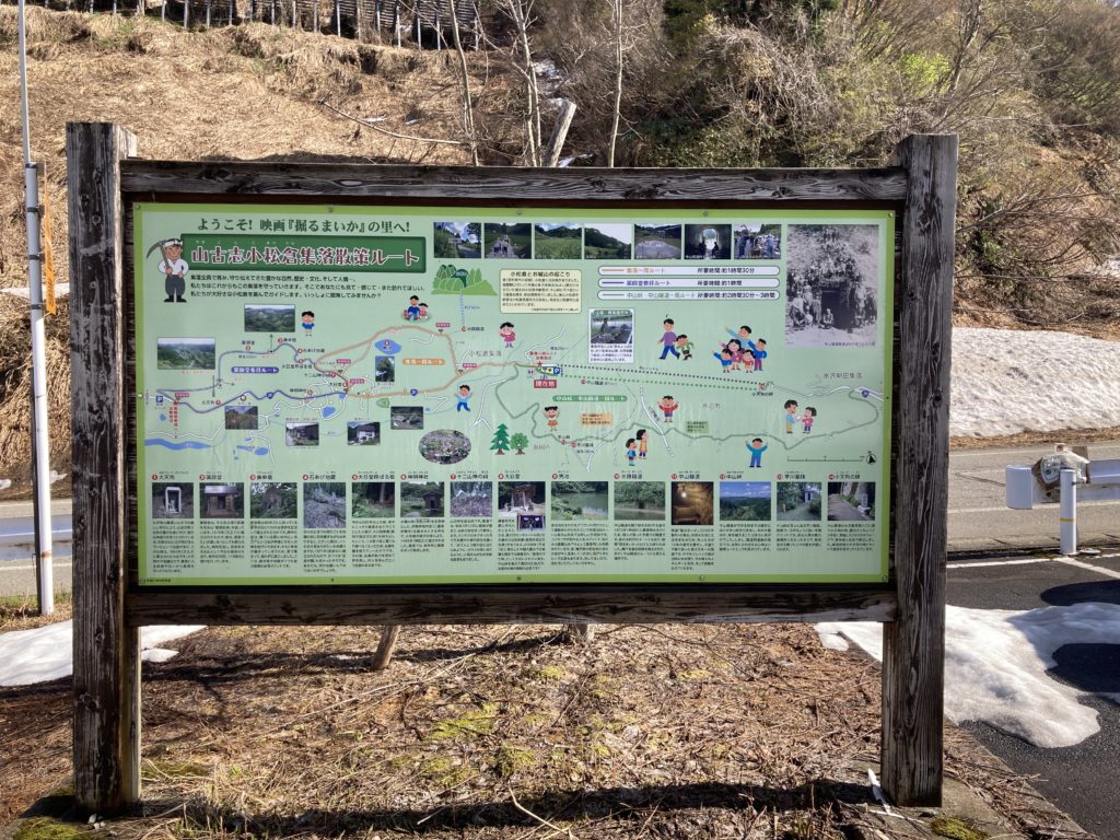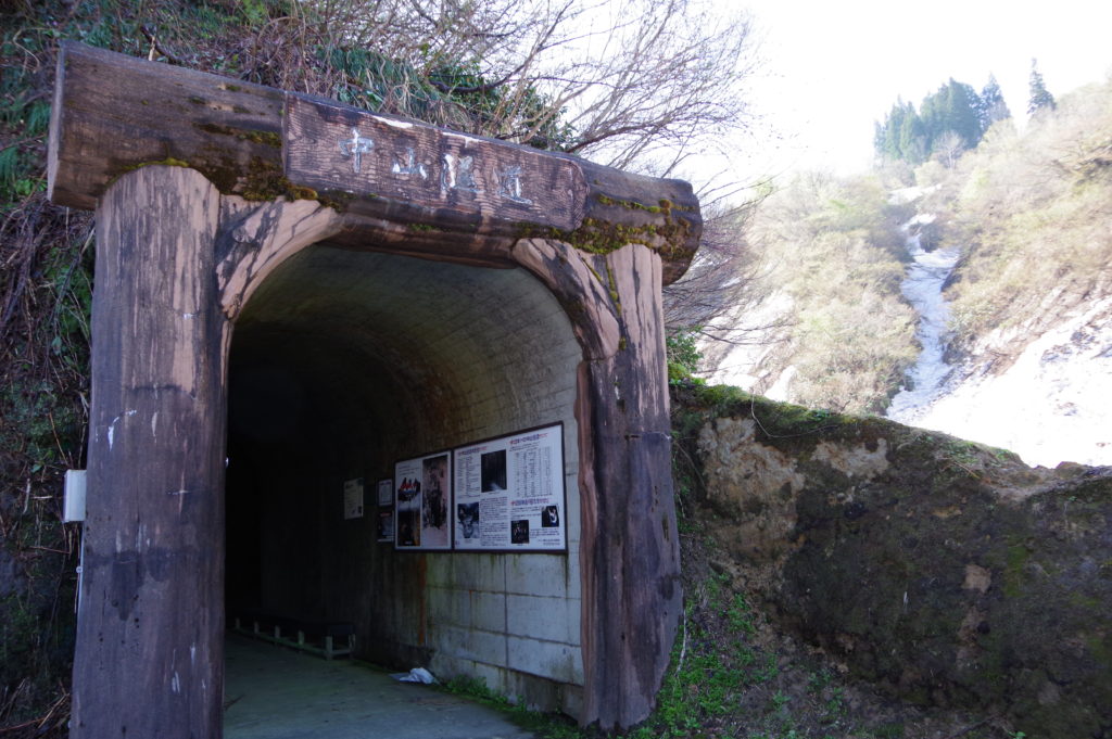 足を運んだのは4月中旬、周辺にはまだ積雪がありこの地が豪雪地帯であることを目の当たりに、案内板が隧道の入り口にありますが、雪に埋もれています。