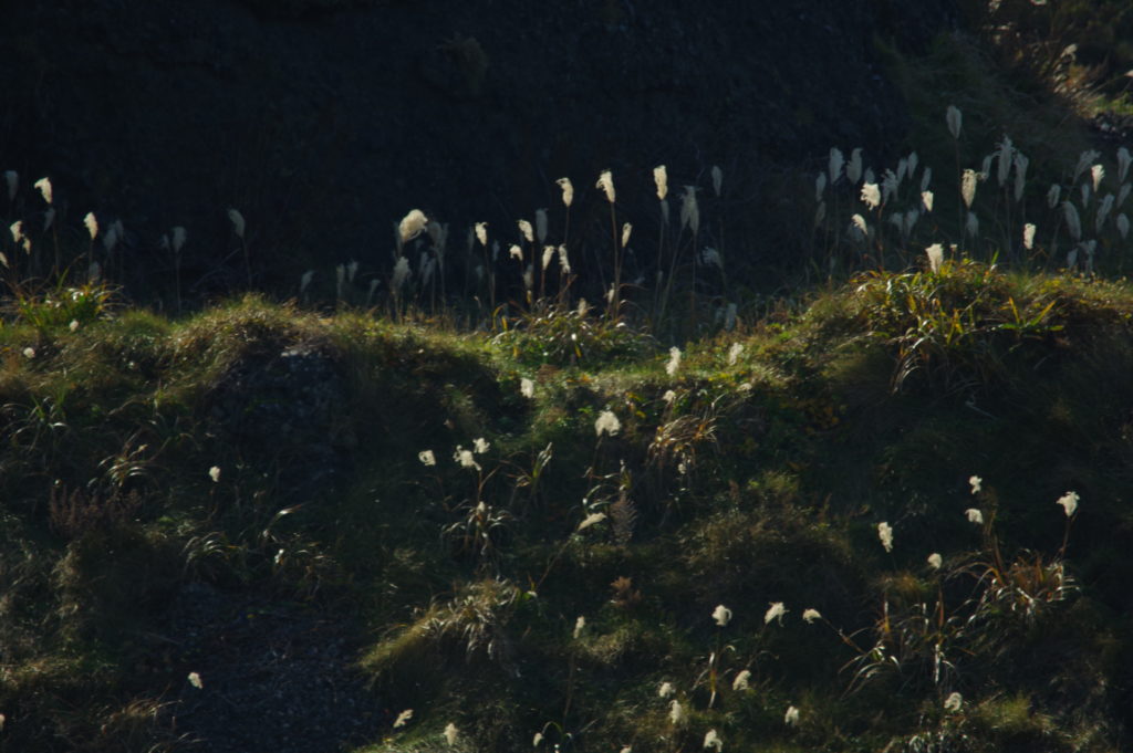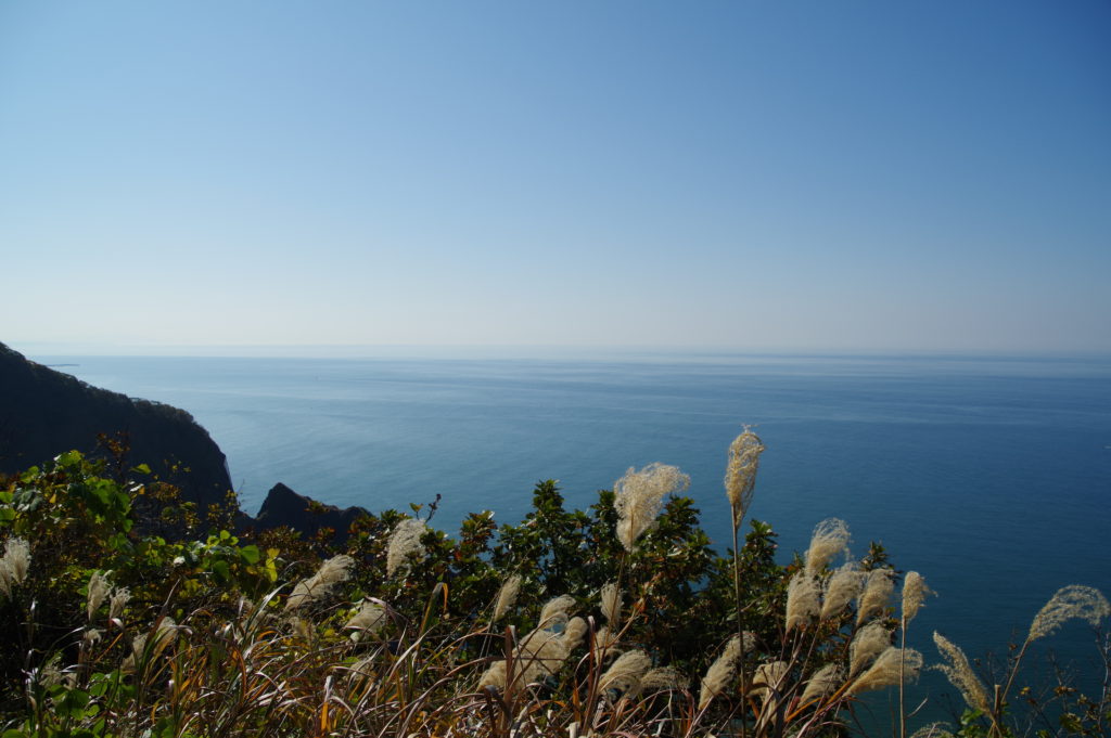 ススキ越しの海。