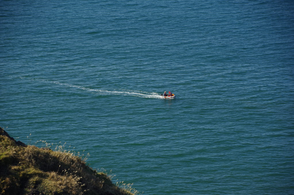海が穏やかなので、船が通過するのも見えます。