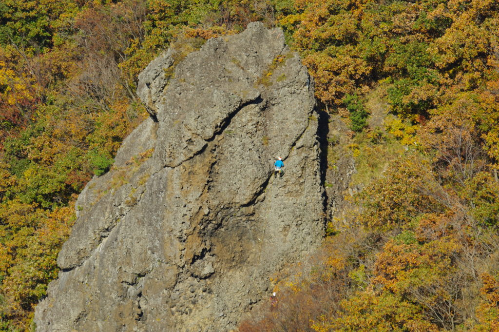 左手の岩山を登る人の姿も。