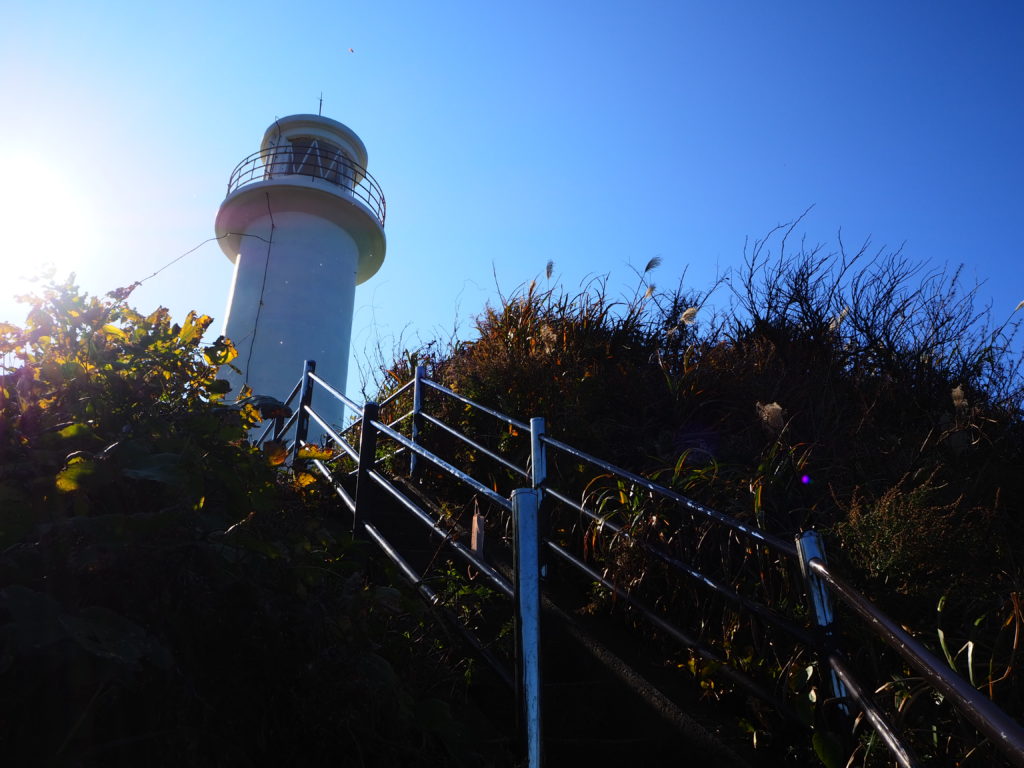 灯台は小高い岬の上にあり、断崖絶壁を思わせる石段を登ってアクセスします。