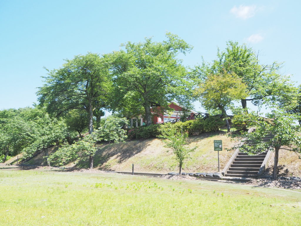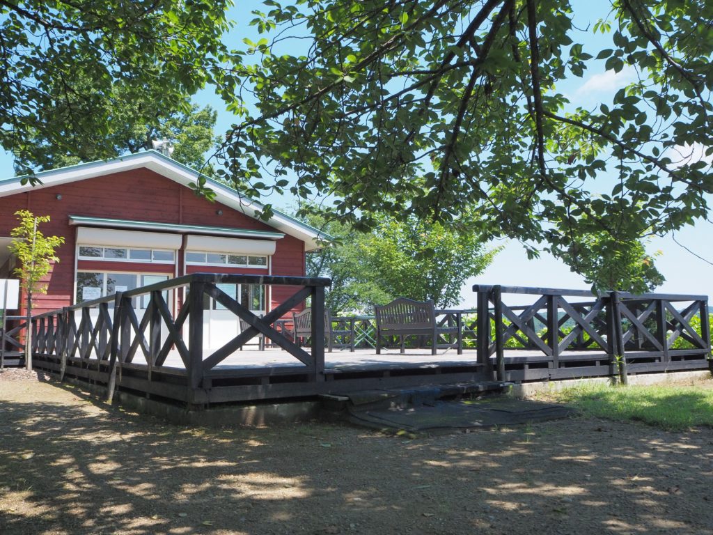 水道山公園の頂上にある赤い「水道山の家」は、昼間に誰でも休憩などに利用できるスペース。またここではBBQもできるのだそうですよ。まるでウッドデッキがあり、山小屋のような風情がある場所です。BBQは日中のみで、事前の申し込みが必要になります。