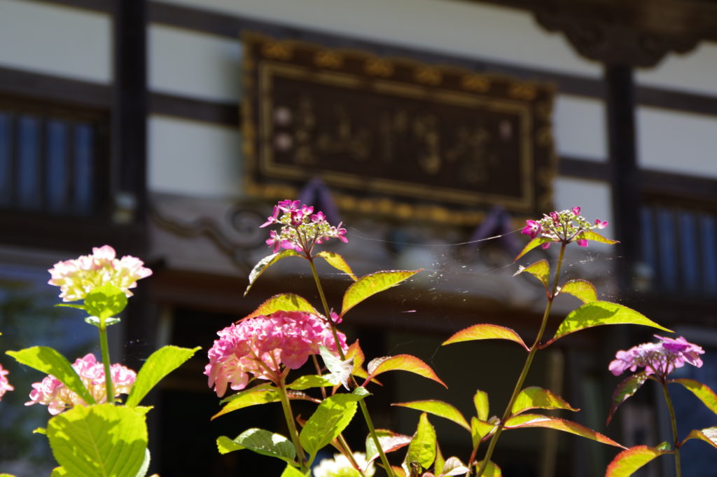 山門をくぐる前から色とりどりの紫陽花が見られ、さすが紫陽花寺の風格を表します。